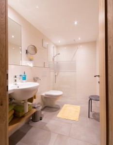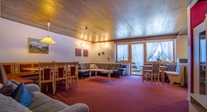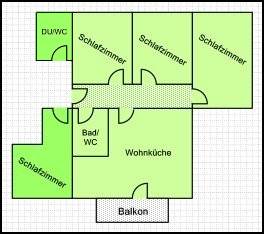 Diese Ferienwohnung verfügt über drei Doppelzimmer, einem Badezimmer mit Dusche/WC, einer großen Wohnküche (40 m²) mit Esstisch und Sitzcouch sowie einem Südbalkon